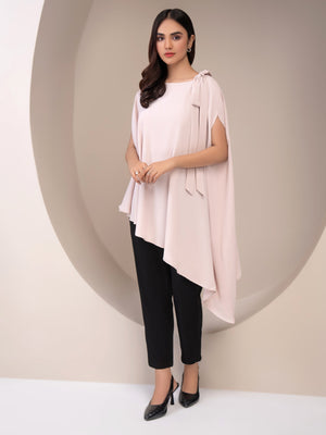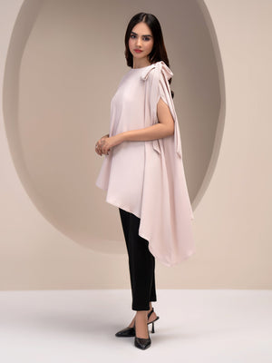 - Dyed asymmetrical top with bow at one shoulder